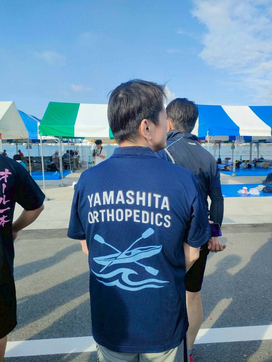 チーム名は、やましたオルソペディックス。メンバーは全員カッター未経験の素人ばかり。艇長は宮野清孝チーフ、艇指揮は福永、舵取りはPT三谷。そして、漕ぎ手はPT白幡、助っ人3名、院長でした。