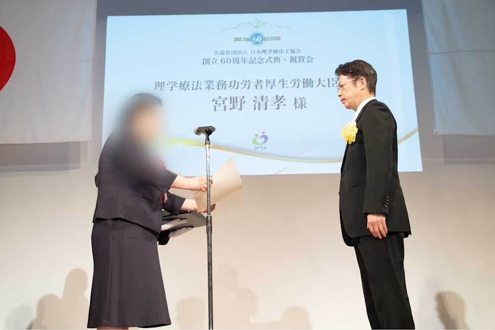 日本理学療法士協会創立60周年記念式典にて表彰され、その功労が全国的に認められた大変名誉ある受賞です。