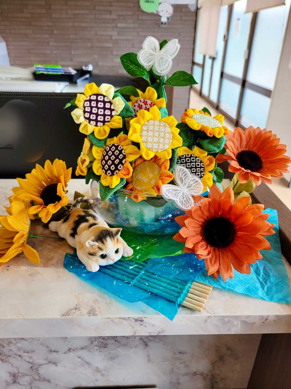さて、受付カウンターは夏休み後半バージョンに模様替えしました。