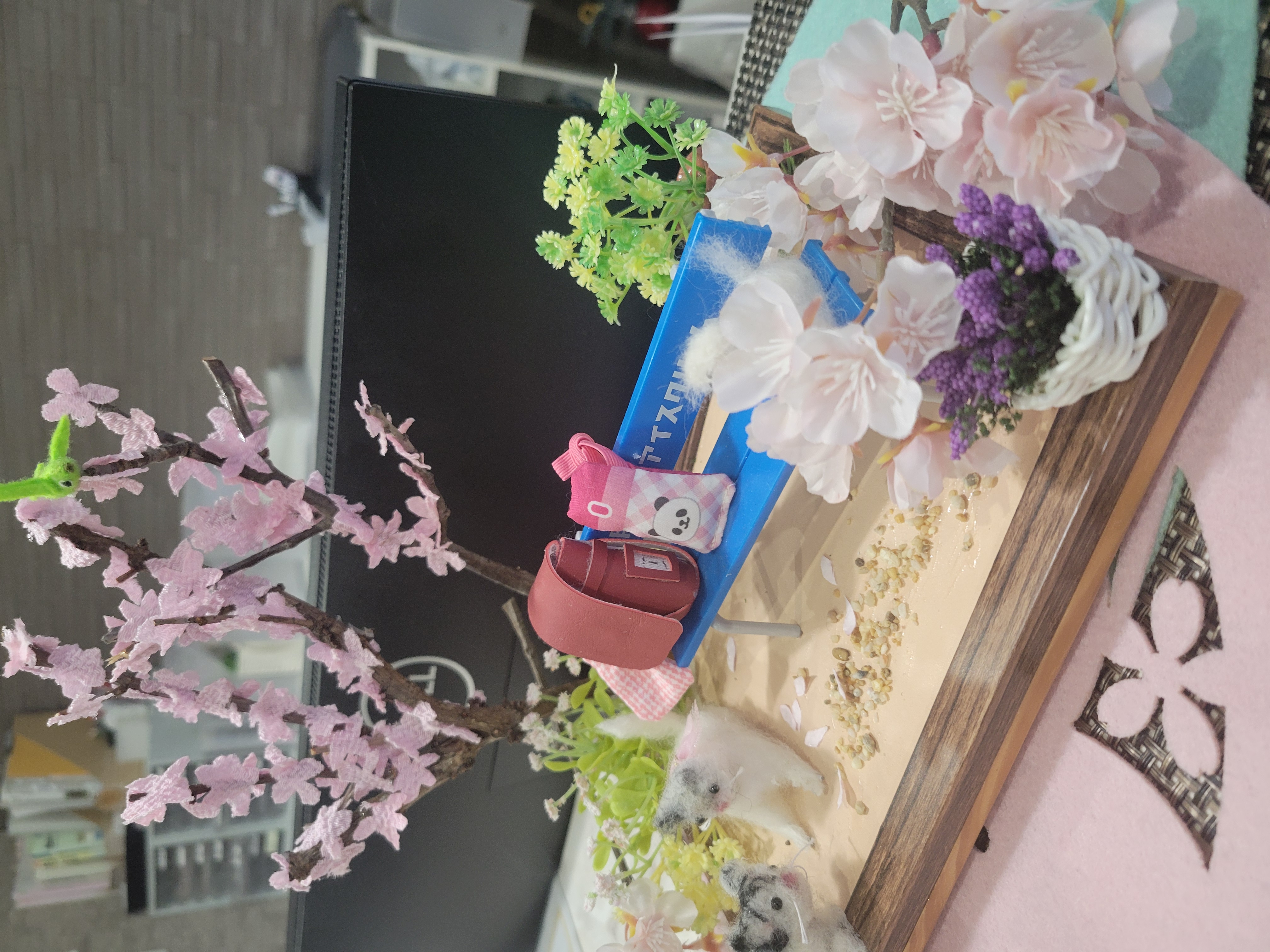 ランドセルと水筒で 「新学期」 をイメージしました。