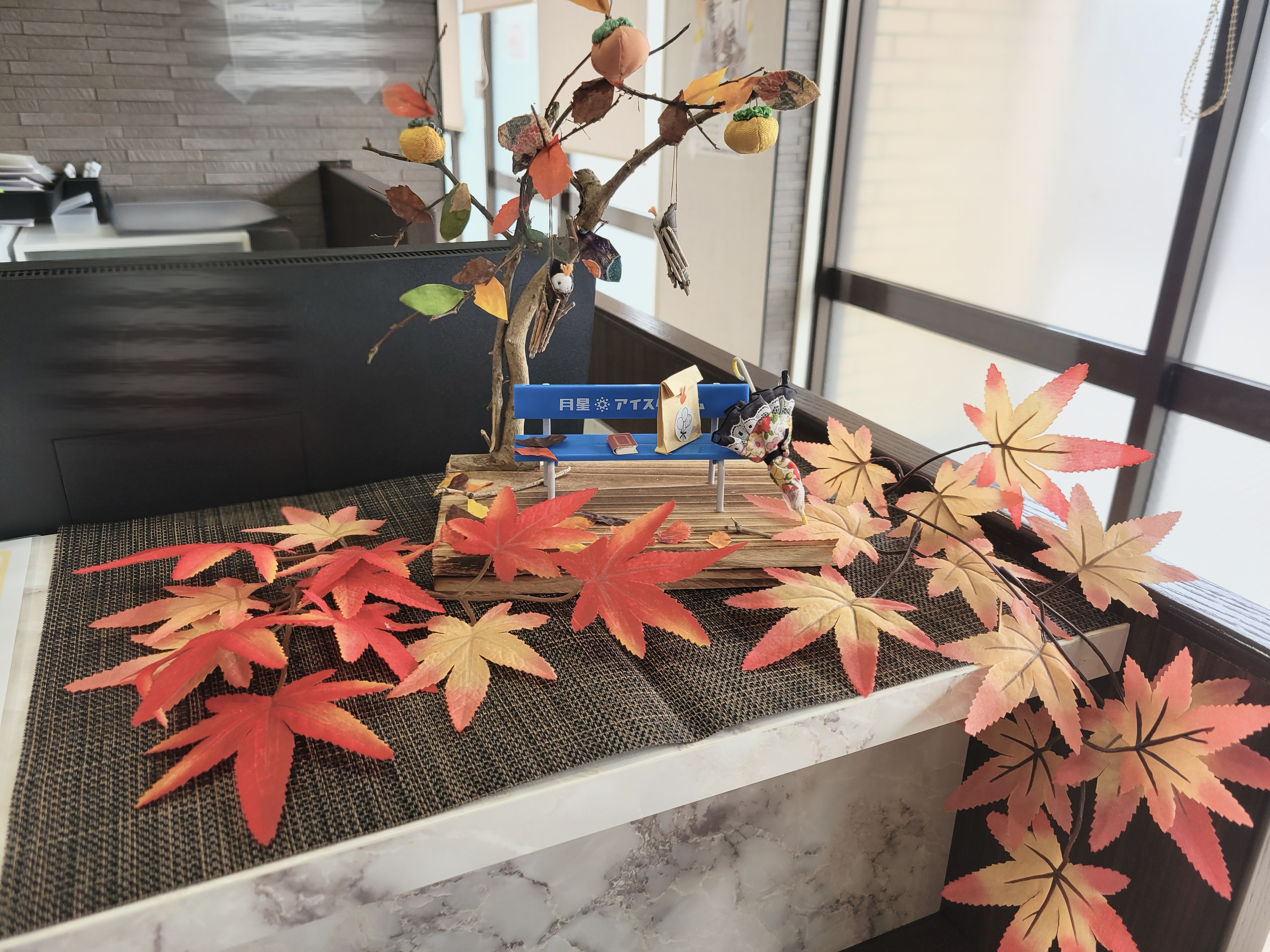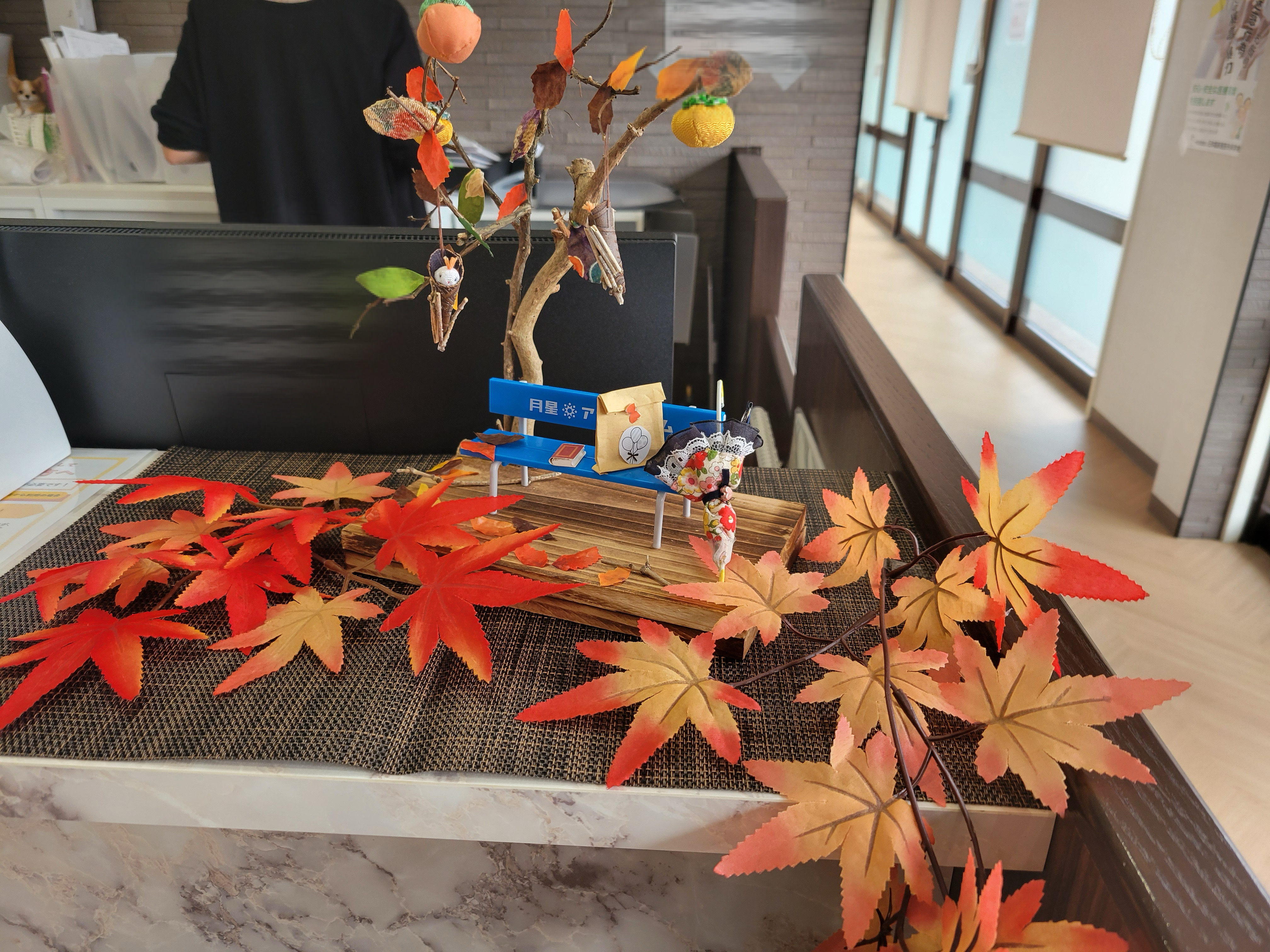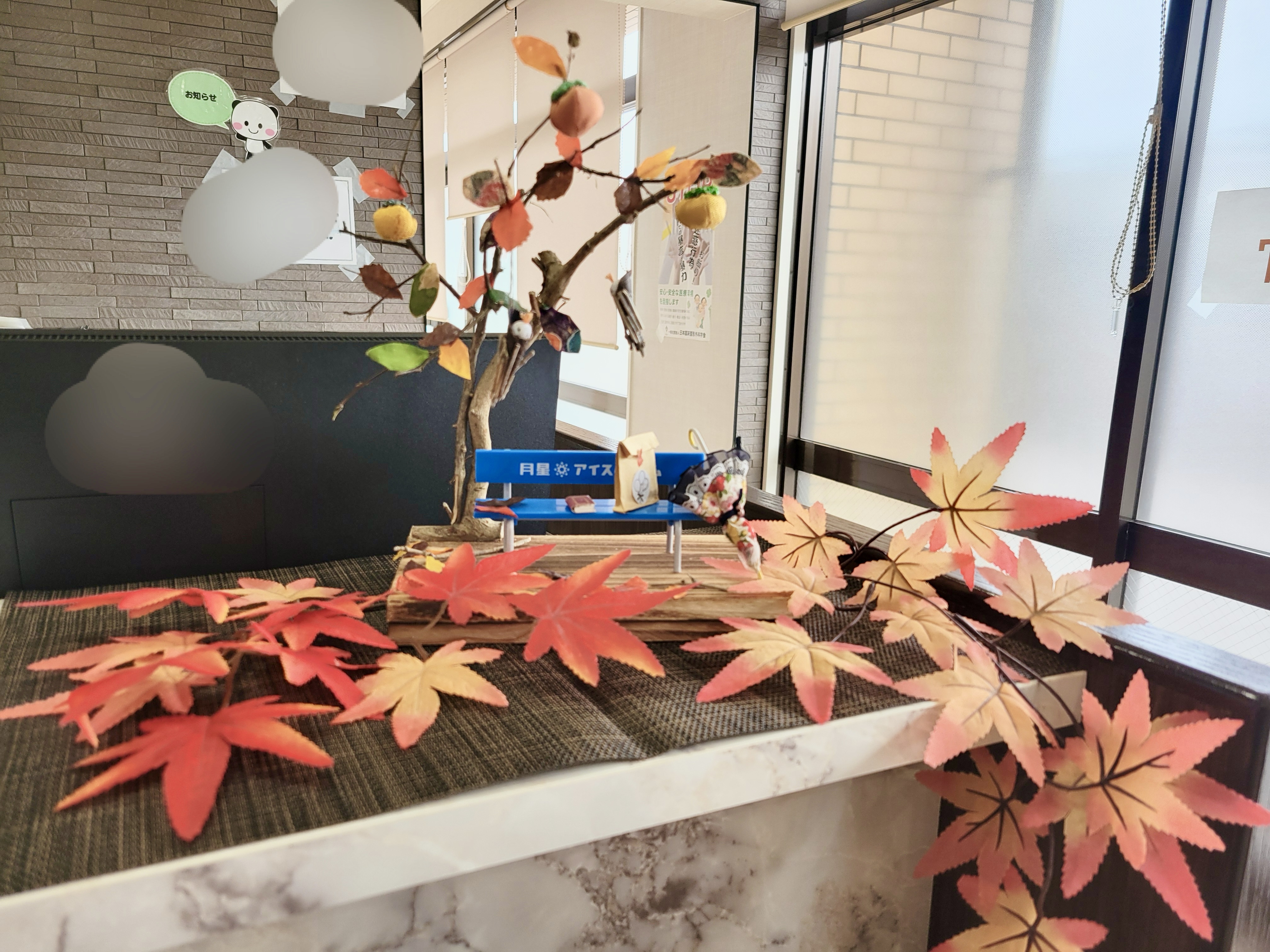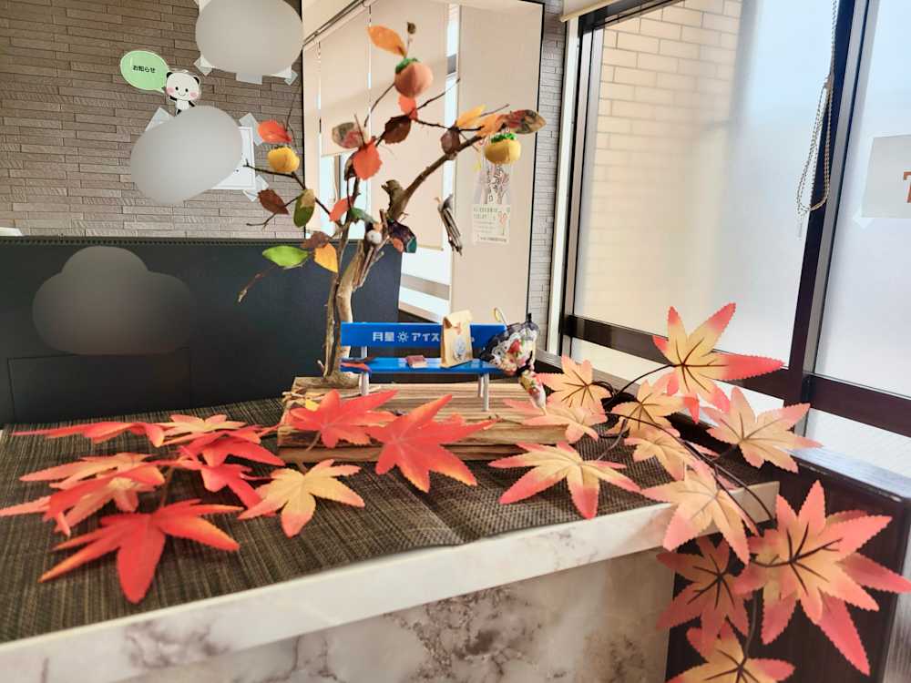 今年は暖冬の影響で、いつもとは違った秋の風情を感じていますが、当クリニックでは皆様に温かさをお届けするため紅葉の飾り付けを行いました。